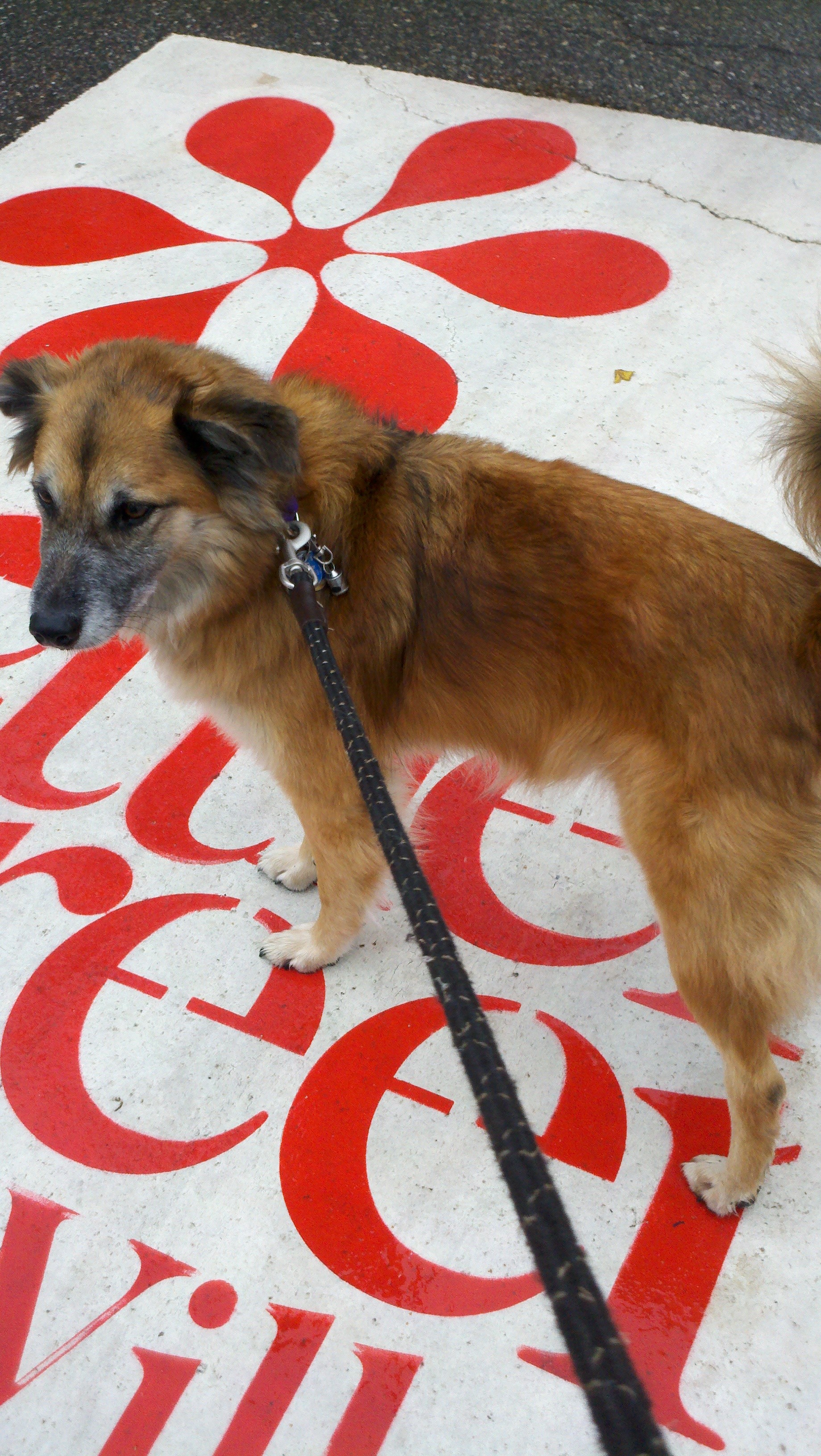 Many of the stores have dog biscuits behind the counter, so they are prepared for visits like ours. Sales staff and other customers all want to pet Chico and offer him a cookie, but he can be very shy about taking cookies from strangers.