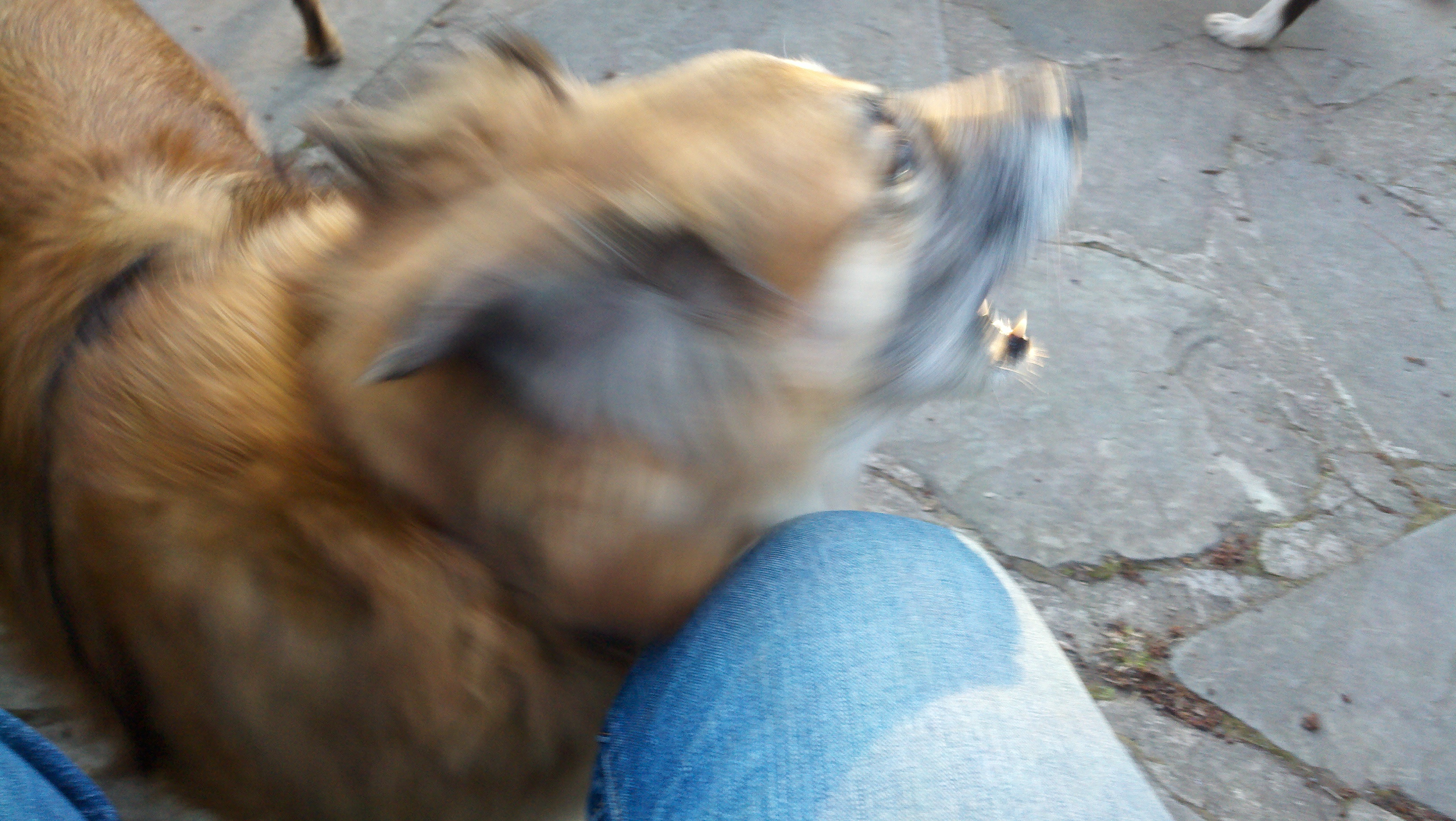 On the second visit it was reported to me that Chico and Harley were playing, really playing, but I didn’t ever get to see it because when I arrived, Chico went back to owning me and staying by my side to keep anything and everything further from me than he was. Kinda like this: