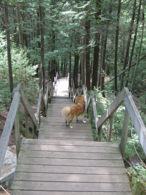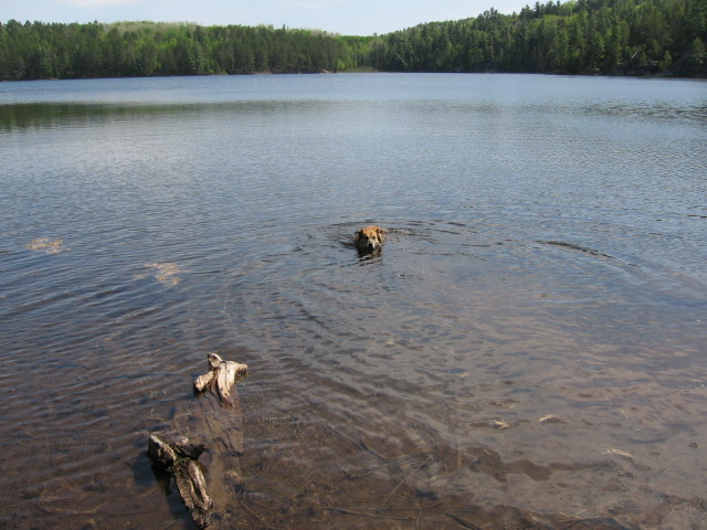 Algonquin Provincial Park is a huge area, about 2 hours from both Toronto and Ottowa. Our arrival was right in the middle of a three day weekend, so the campground was pretty full when Chico and I arrived. Our spot was one spot away from the lake front, with trees and a breeze that kind of kept the bugs away. Our neighbors had dogs, so we were not the only campsite that barked at passers by.