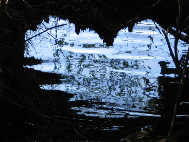 Dogs have to be on a leash *everywhere* in the park, but when we got to this little lake, I broke the rules for a few minutes so Chico could have a dip.
