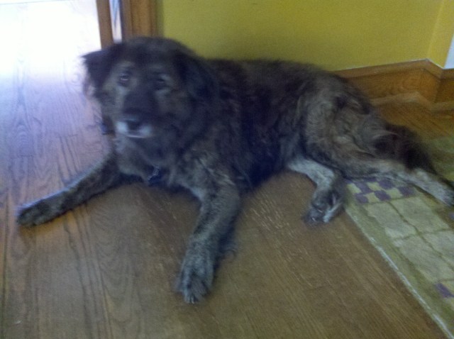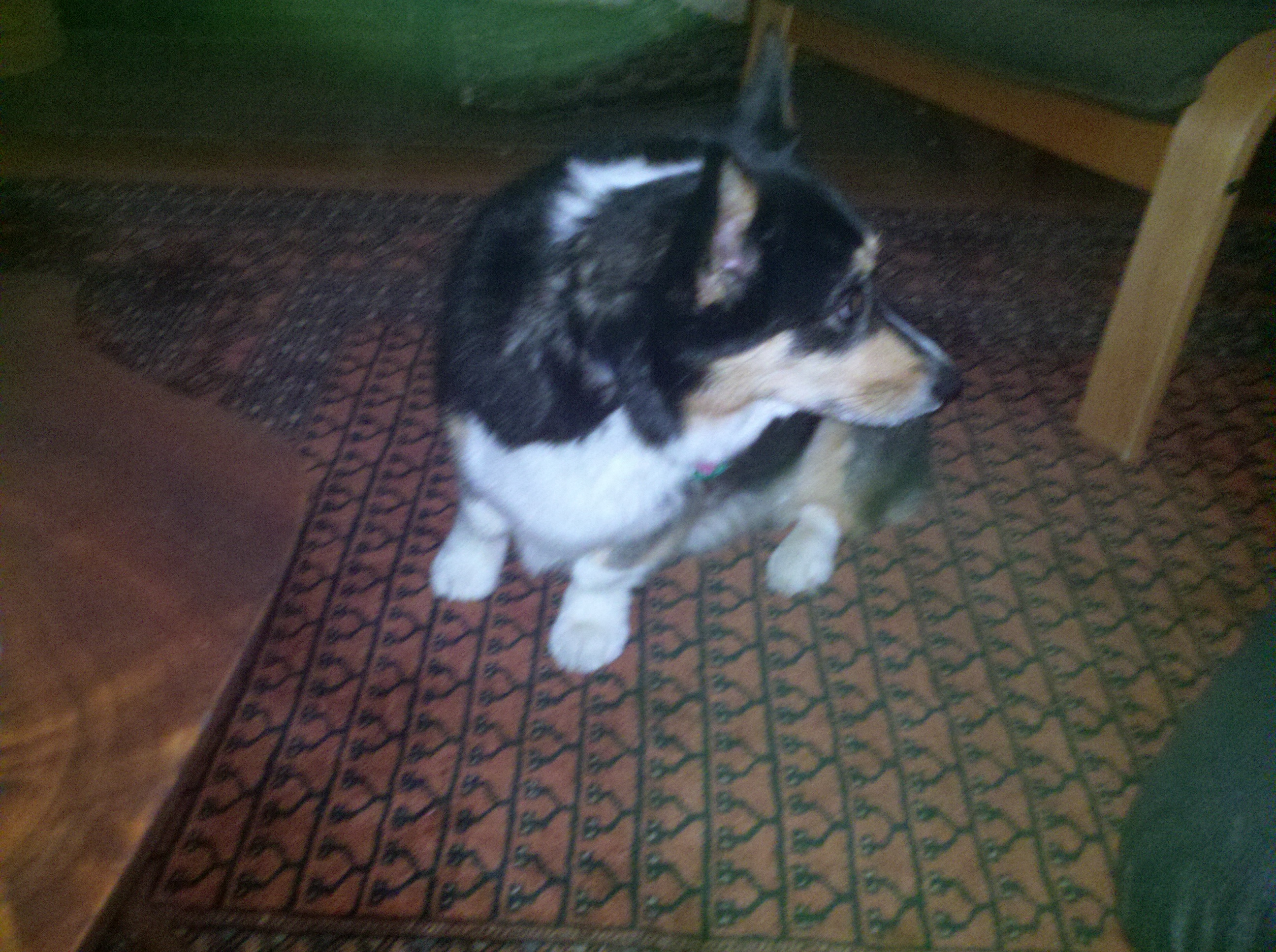 This is Zoe. She’s much younger, more energetic, and pretty pushy about attention and play. And I just reminded her that her humans prefer she not be on the nice rug she is on.