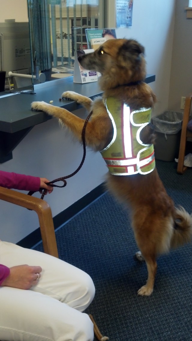 *Except that he didn’t stay exactly where I told him to making it a less than perfect down-stay. The duration and distraction factors were sky high, so I’m cutting him a lot of slack. Compared to what could have (or would have in the past) happened, he was a rock-star in that waiting room.