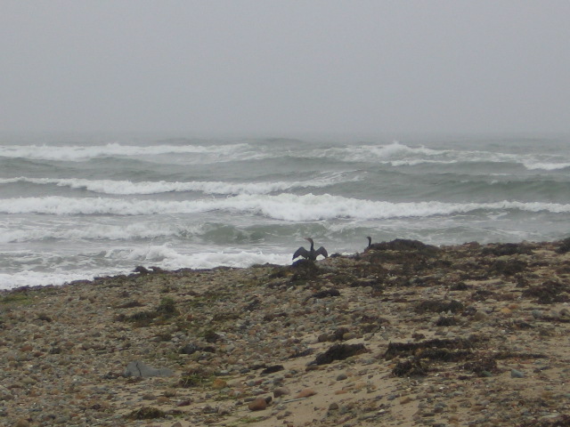 Saturday was kind of foggy and drippy, making it unappealing for walking – a perfect time to take the reactive dog to the dog beach. Less chance of running into other humans or canines.