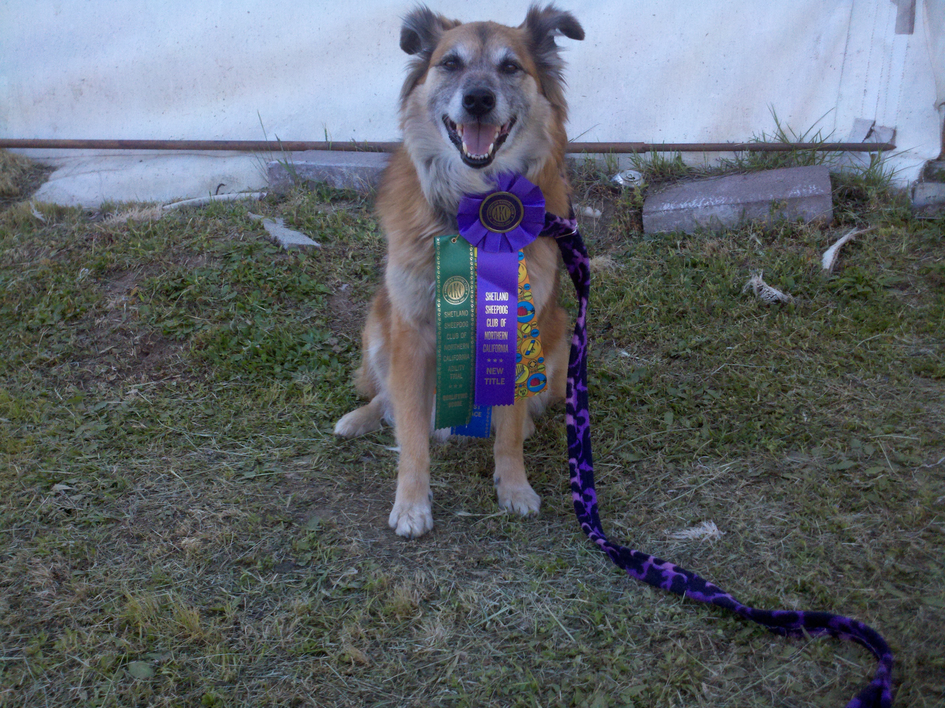 It was not graceful, it did not flow. No one got hurt, Chico listened to my every direction and we had a clean, if ugly, run. Perfect score, qualifying ribbon, a blue ribbon because of the five dogs in the class we were the only ones to qualify, and a new title.