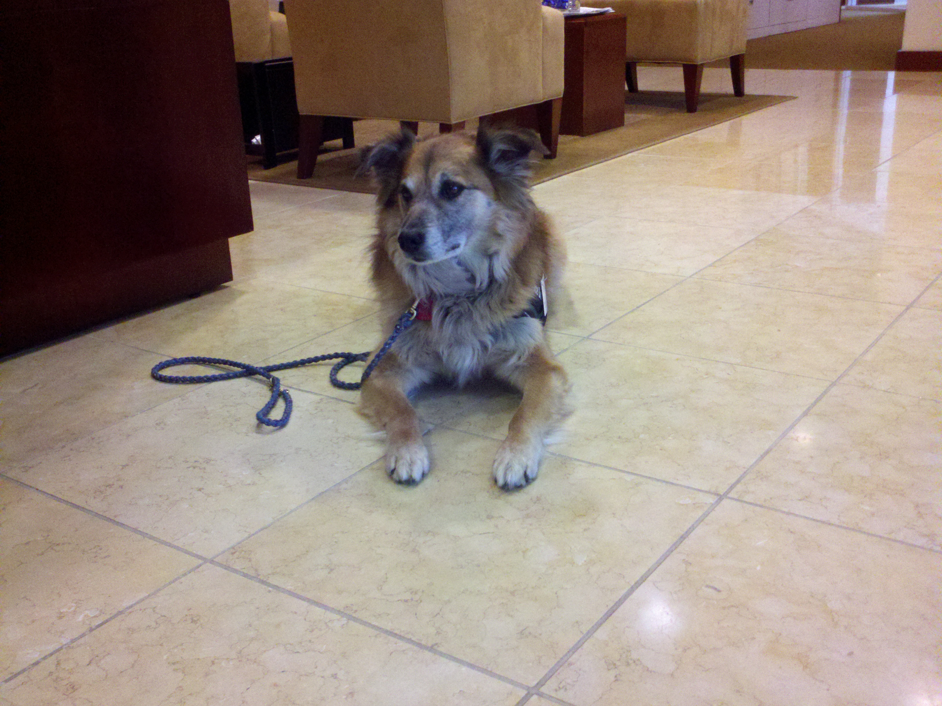 On Monday, we went to San Francisco for a meeting. I had been assured that Chico was welcome at the office we were going to, but I had to do a little fancy talking to get him through the lobby.