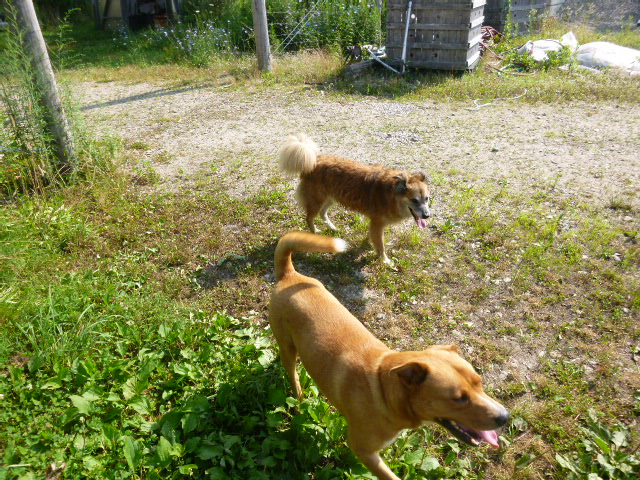 And THEN, when we got back from the walk and were puttering around the gardens, Dogger showed up. Dogger belongs to one of the workers at Eva’s Garden, and he runs around the place on his own terms.