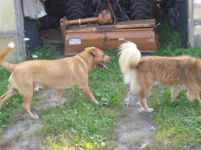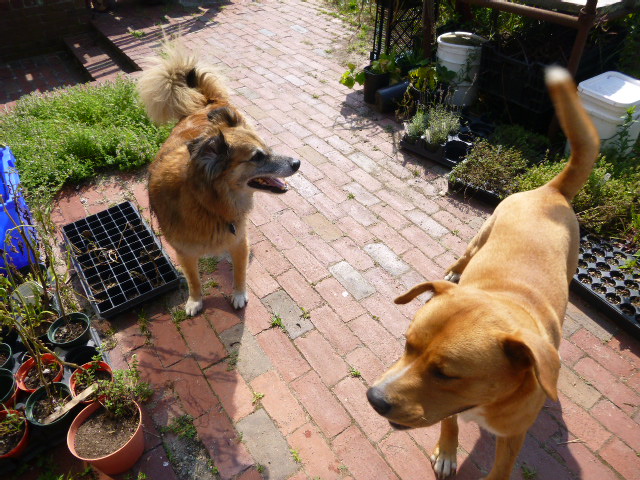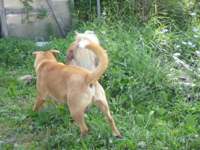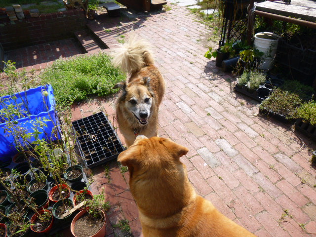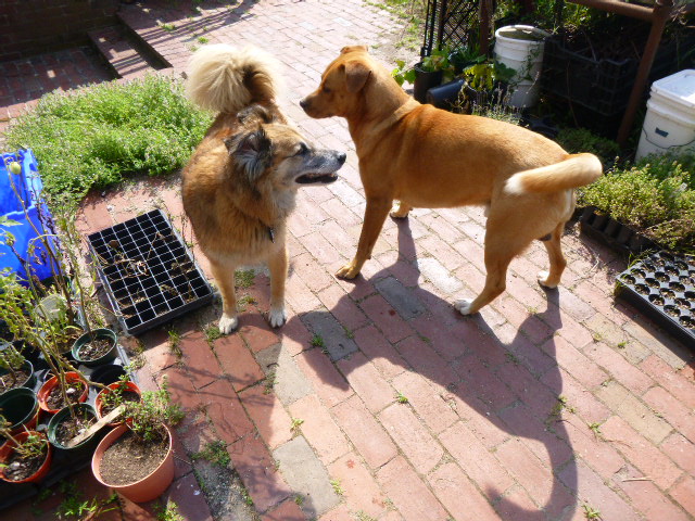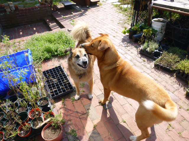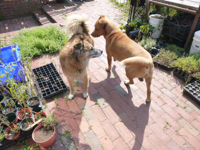 So we went back outside for a few minutes. In these pictures, you can see Chico lose his tolerance for Dogger’s friendly attentions. By the end, he’s just starting to curl his lip.