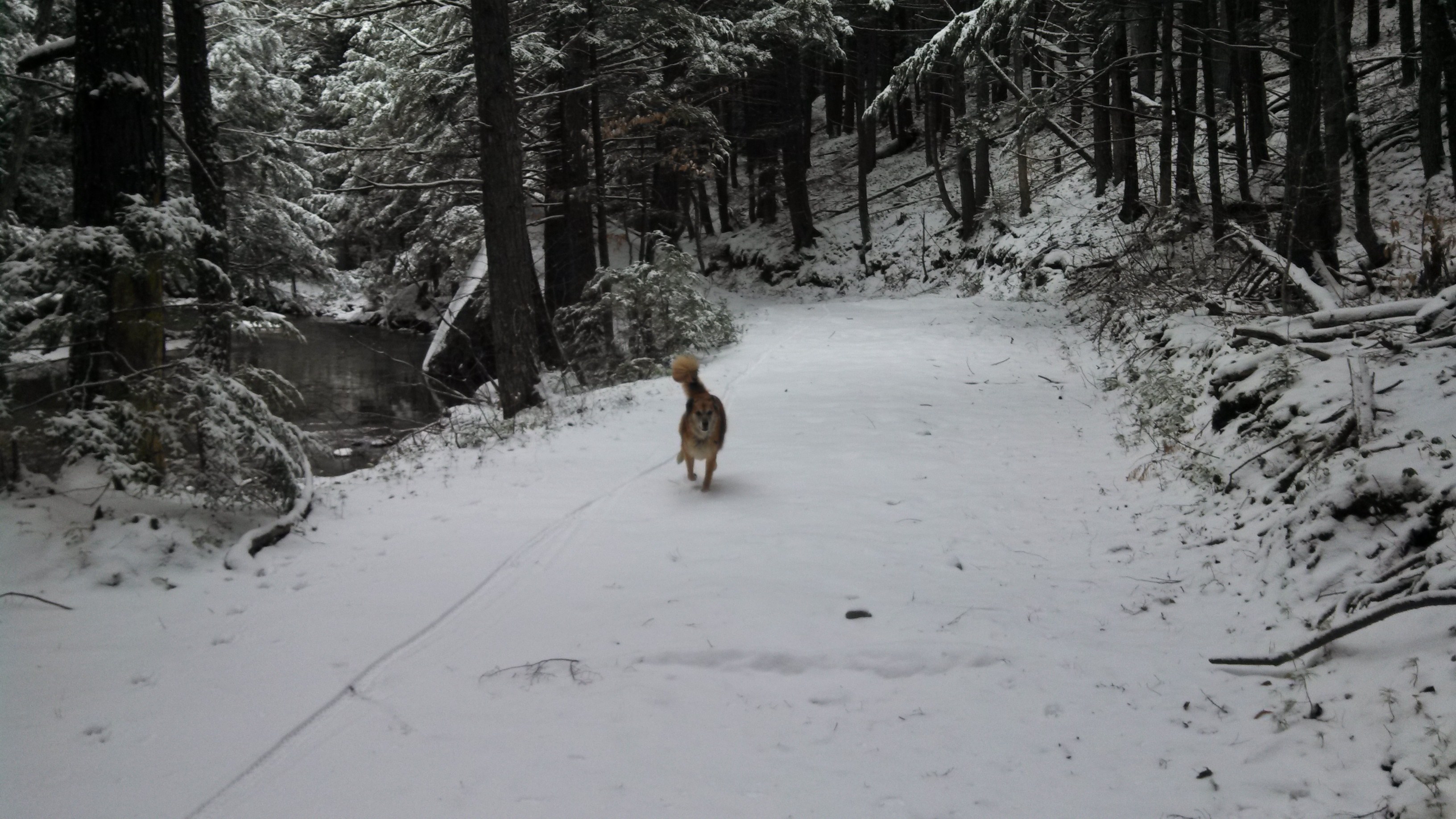 There’s trail in Wonalancet that runs right along a brook. It’s one of my favorite places in Tamworth to walk. One snowy day, Chico and I went there for a stroll.