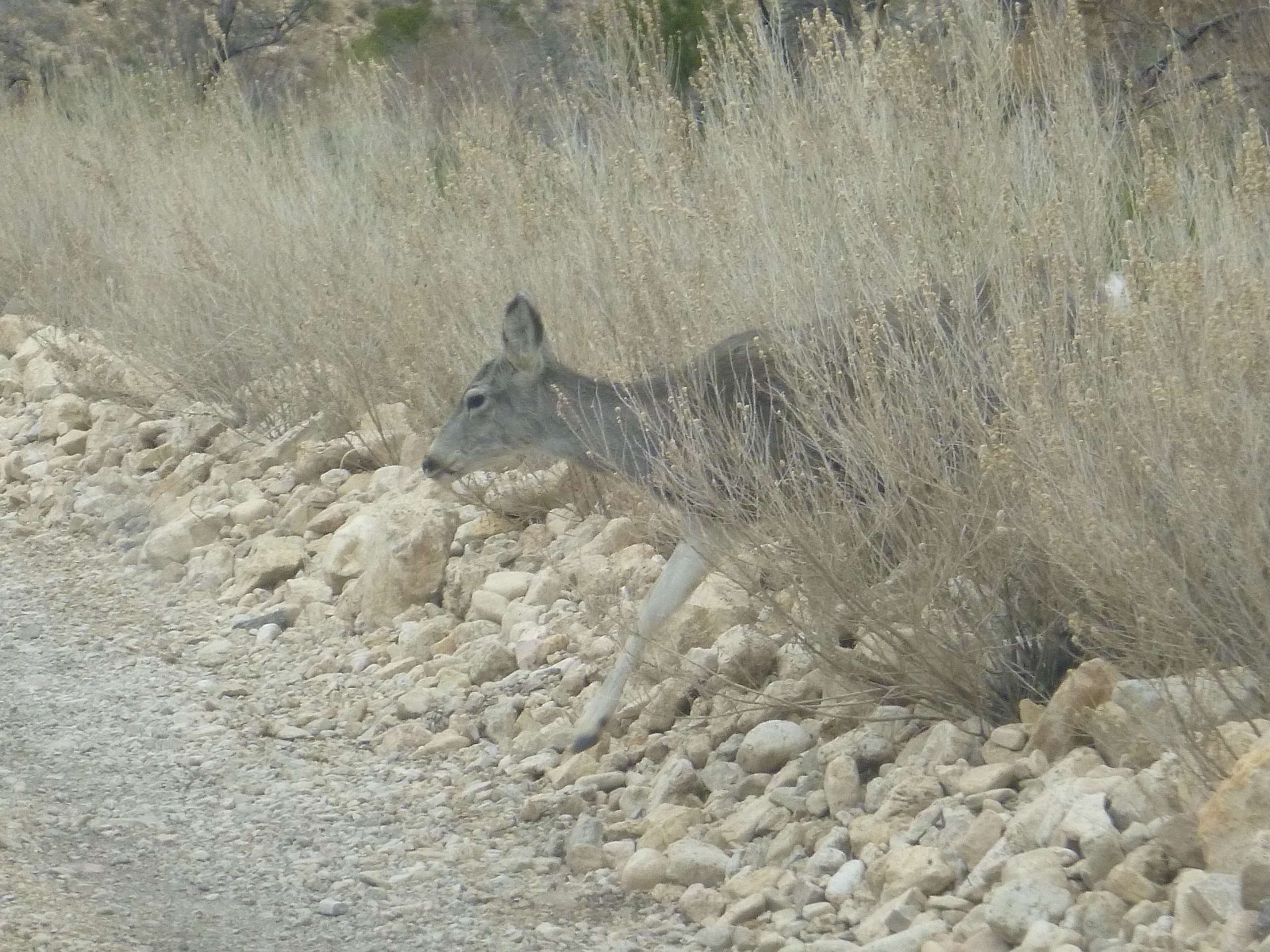 On the way out, there’s a little loop road through a canyon, so we took it. We encountered a momma deer and her babies.