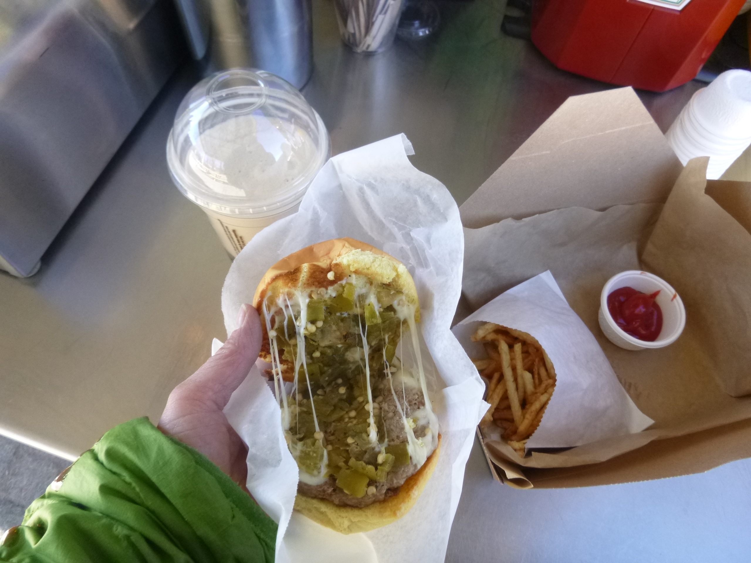 I had the lamb burger, dolled up as a green chile cheeseburger: