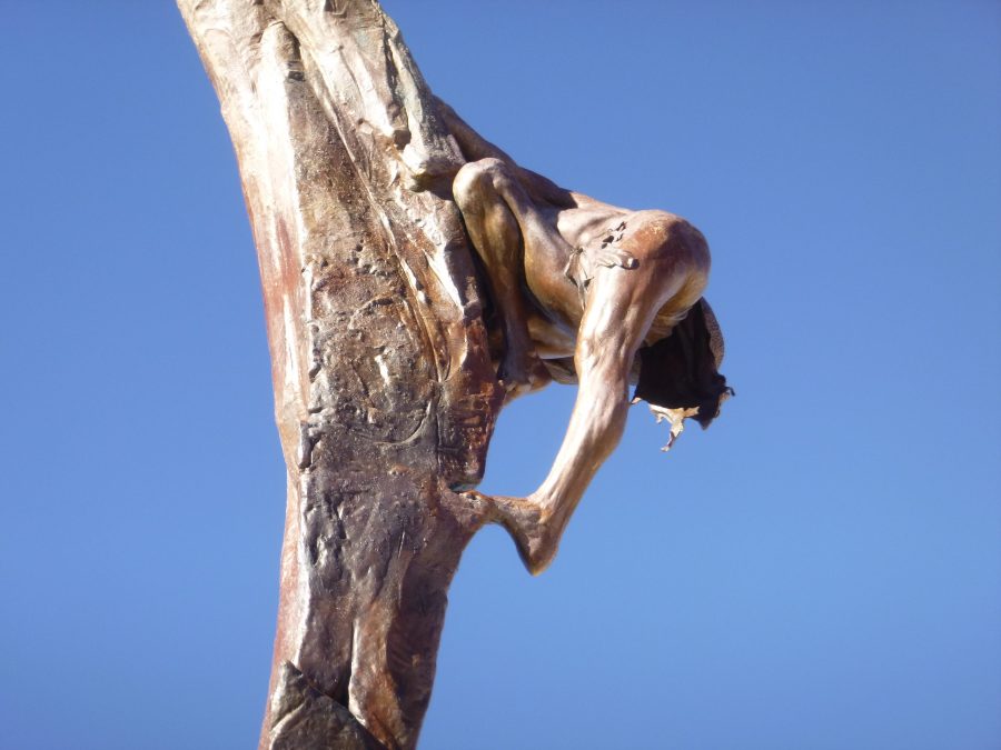 This statue was outside the visitor center. To use the light at that moment, this was the only shot I could get, it certainly gives a dynamic picture of how hard it was to get to and from those cliff dwellings.