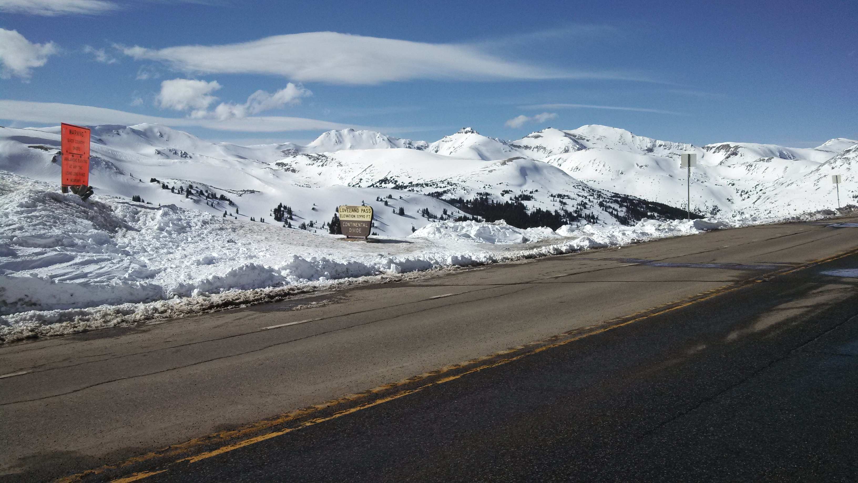 The next day, we went on towards Denver, using a mix of the interstate and Route 6. A real treat was crossing the continental divided via Loveland Pass, at almost 12,000 feet. Part of the route goes past ski areas with slopes so steep I couldn’t imagine sliding down them on slippery sticks. But I’m a timid cross-country skier so maybe my perception is also a bit timid. The slopes I speak of are not in the picture below, but they didn’t seem too much different in steepness.