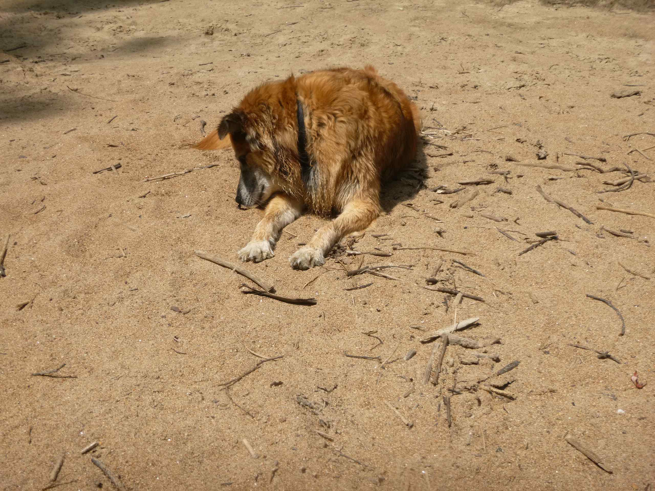 Chico seemed to enjoy getting wet and then lying in the sun to dry off. I believe he's examining a bug.