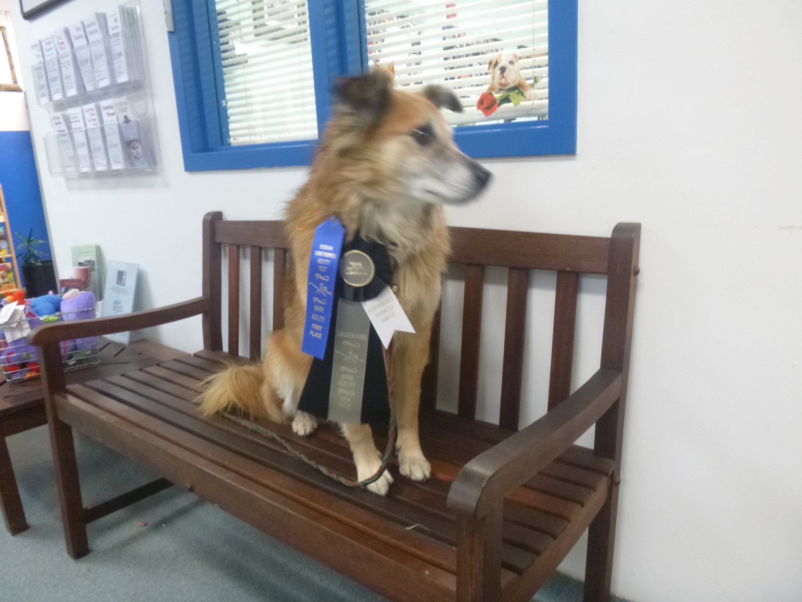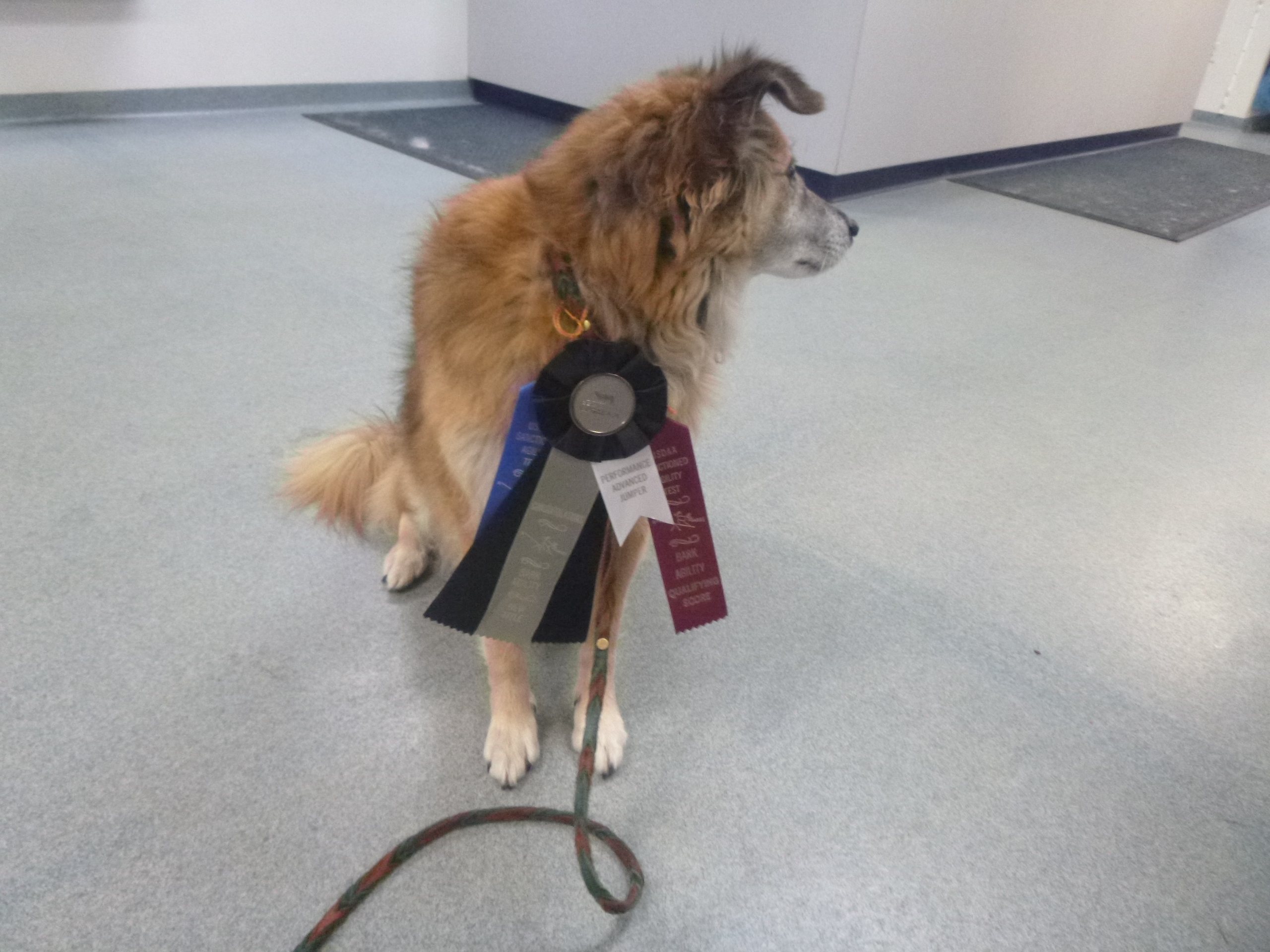 Admittedly, she also asked how old he is, so his years are showing, and time has mellowed him like it does many of us. In that time, the number of places he’s been with me, the things he’s seen, makes him take more things in stride. And he was happy to be with me inside where the action is, rather than in the crate in the car, where he also spends a lot of time on a trial day (both with and without me in the car too).