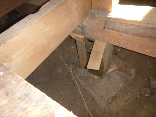 Some leveling has been done, and some new piers will get made and placed. For now, they are doing what my dad says is the only useful thing he learned in the service – “if it wobbles, shim it.”