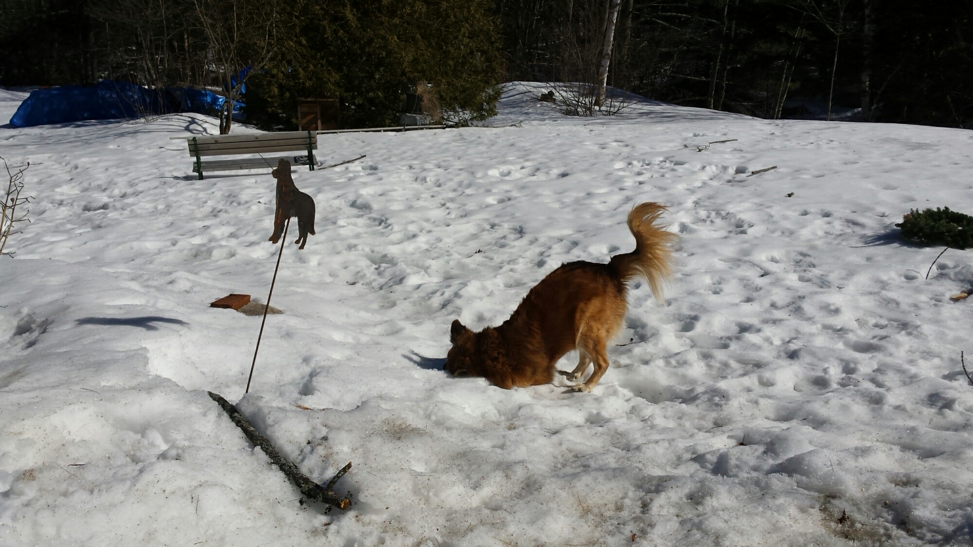 This series of pictures was taken to make sure that I had something nice to show the garden stake. At the maximum snow depth after our February blitz of storms, the tips of the little ears of the garden stake just barely stuck up out of the snow.