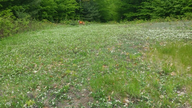 When we walked through here earlier this week all those white flowers were ripe strawberries. I ate a number of them. I can assure you they were quite delicious. And I thought they would be there so I had to bell on my backpack in case any bears were enjoying them. But we didn’t see any bears.